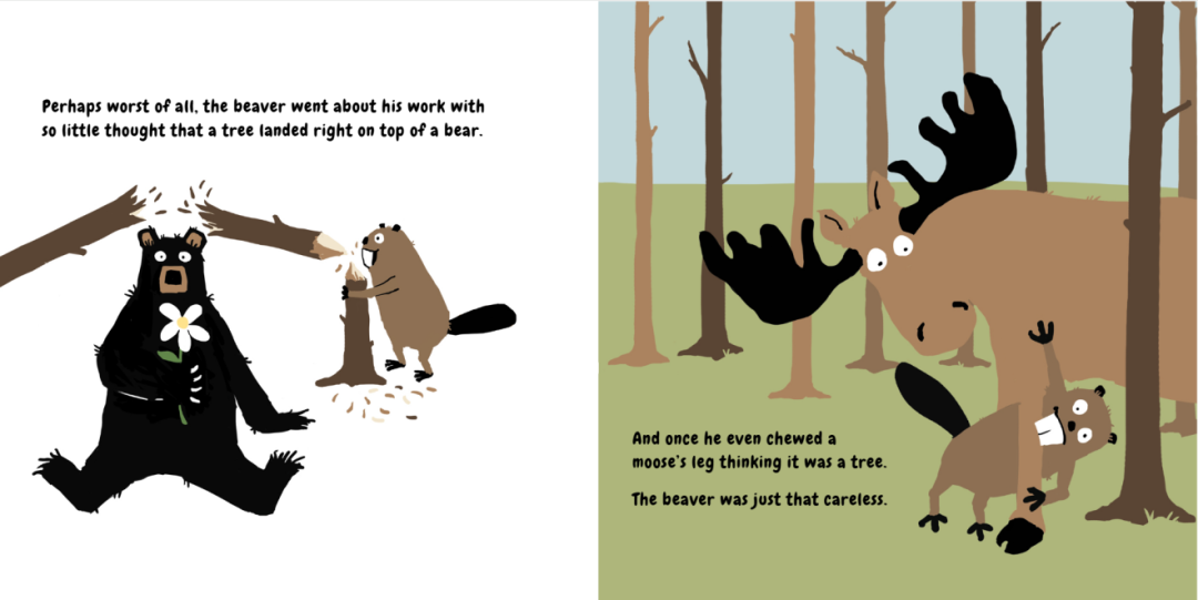 也许最糟糕的是,海狸做事几乎不加思考,有一次,一棵树竟然直接砸在了一只熊的身上。