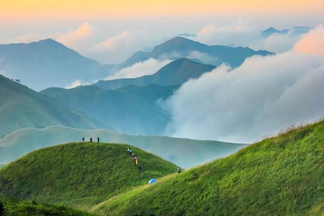 吉安还有武功山。武功山位于萍乡、吉安、宜春三市交界处,每年五月一过,天南地北的登山客“围攻”十万亩高山草甸,场面贼拉壮观。萍乡入口名气最大,游客最多。吉安入口(安福县)坡缓人稀,更省体力,也是一条热门路线。