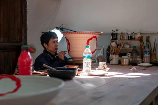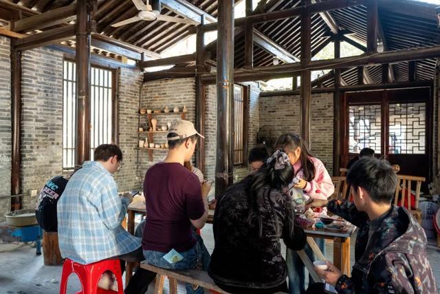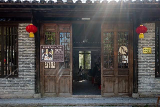 遗址公园内有一处「陶冶坊」,可以简单理解为新旧杂糅的吉州窑工作室——在复原古法制窑的场景里,当代匠人正在打磨新时代窑器。