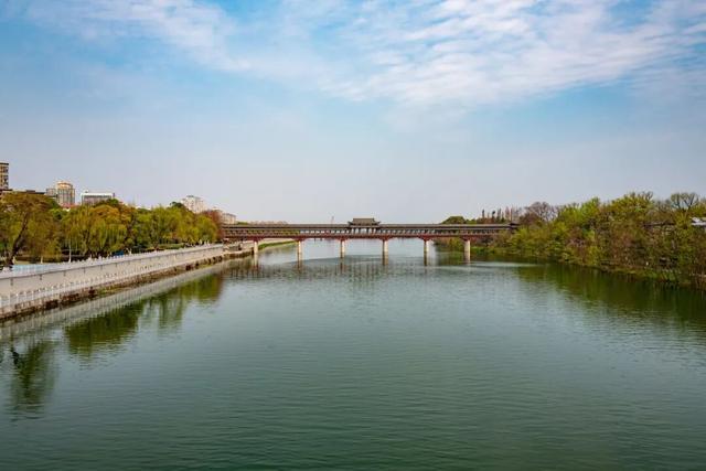 赣江江水围合出一片绿洲,白鹭洲书院就设在这里。去书院,要先走过一座跨江廊桥。