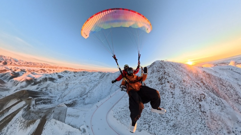 在新疆,冰雪+高空运动成为一种新玩法