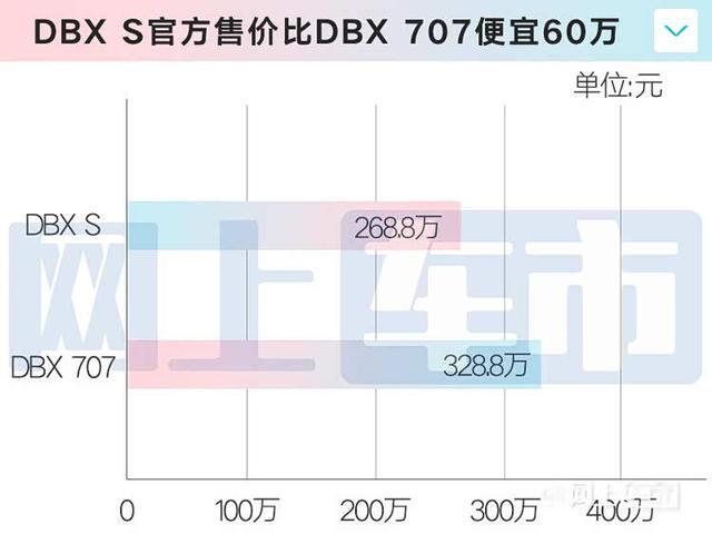 DBX S以268.8万元的定价,直接击穿DBX 707的价格防线。因为707在中国有大量的库存!DBX 707终端优惠从原本的60-70万大幅扩容至160-170万,裸车成交价下探至260-270万区间!官方328.8万,常规原配80-120万,再加上豪车税达到500万级,现在只需要260万,5折的价格。